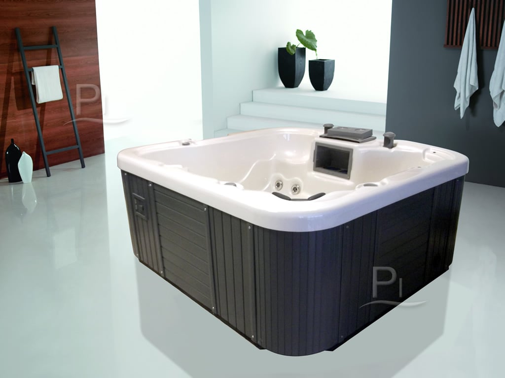 Vasca idromassaggio minipiscina da giardino per 5 persone. Completa di pannello di controllo digitale, riscaldatore, ozonizzatore e radio FM con lettore USB. Ingombro esterno 2,18x2,18 m. Altezza: 0,88 m.